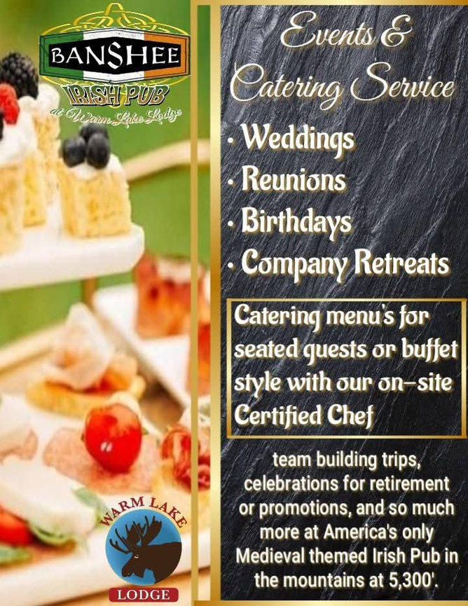 Plan your wedding, reunion, birthday, corporate retreat, or team building trips, celebrations for retirement or promotions and so much more at America's only Medieval themed Irish Pub in the mountains at 5,300'.